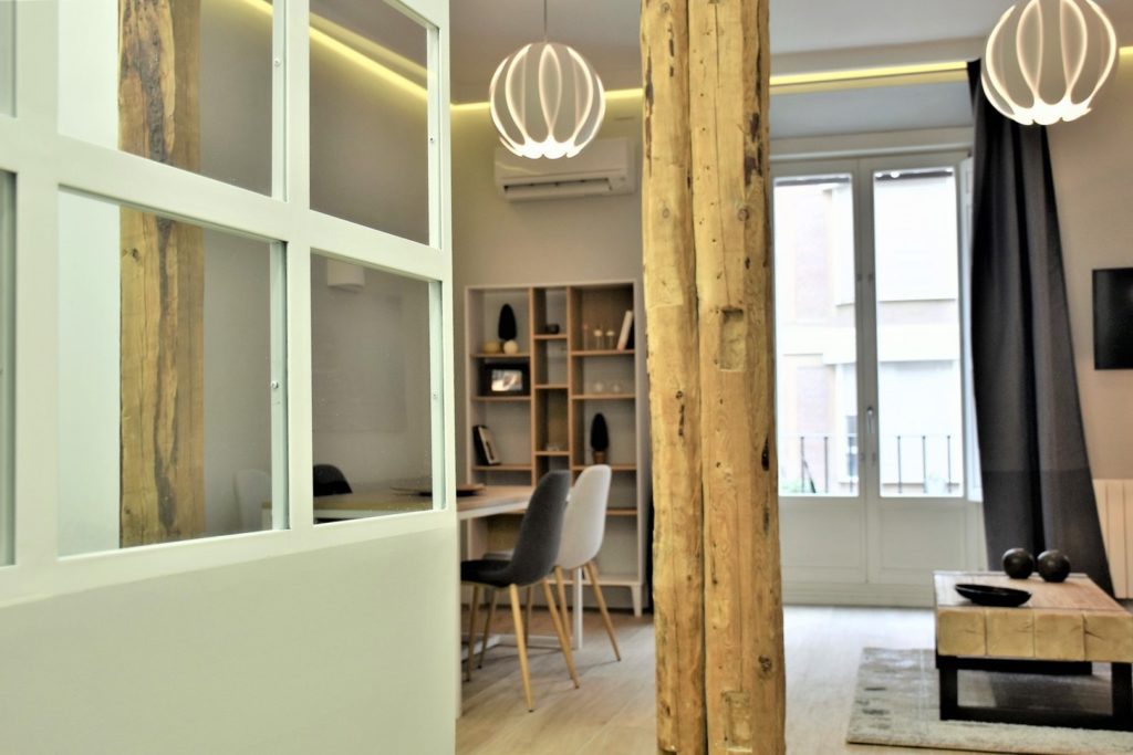 Apartamento exterior: 50 m² Salón con cocina abierta y separación de hall con cristal industrial. Dormitorio intependiente con baño completo. Sofá cama en salón. Balcón a la calle Hortaleza.