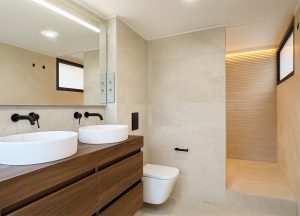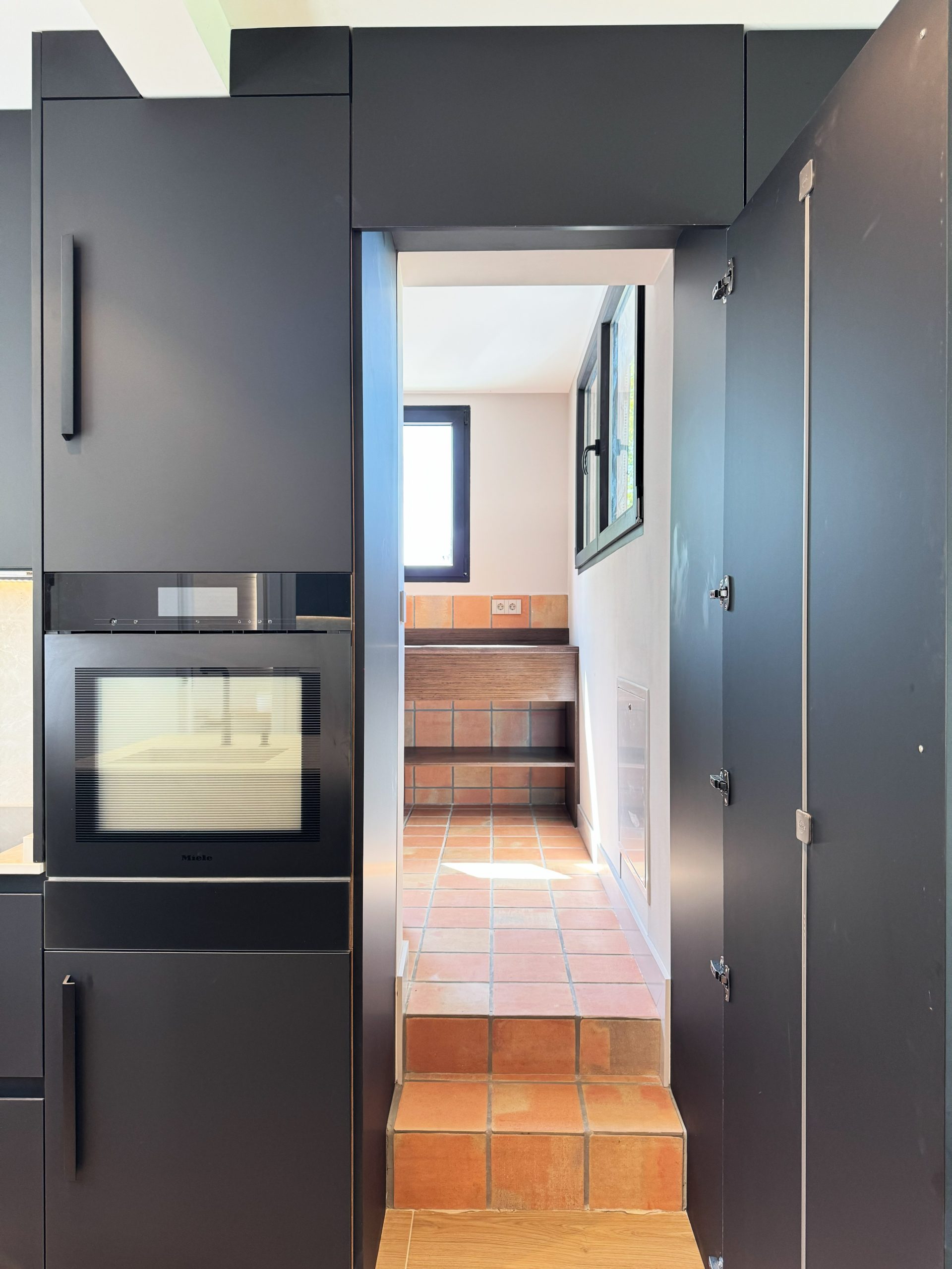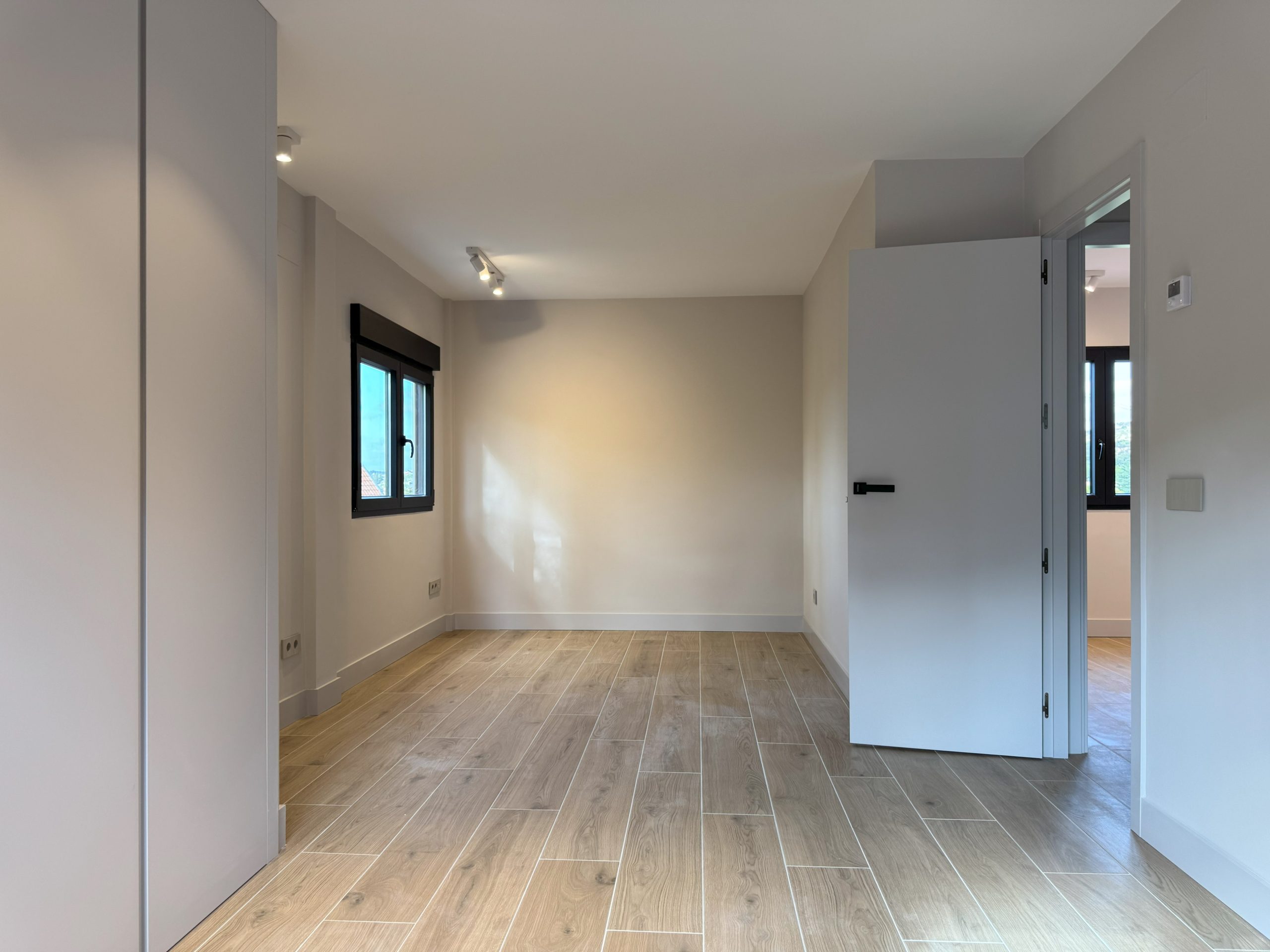 La reforma se completa con la instalación de aerotermia en toda la vivienda y la renovación de los armarios en todas las plantas, mejorando el confort, la eficiencia energética y la coherencia estética del conjunto.