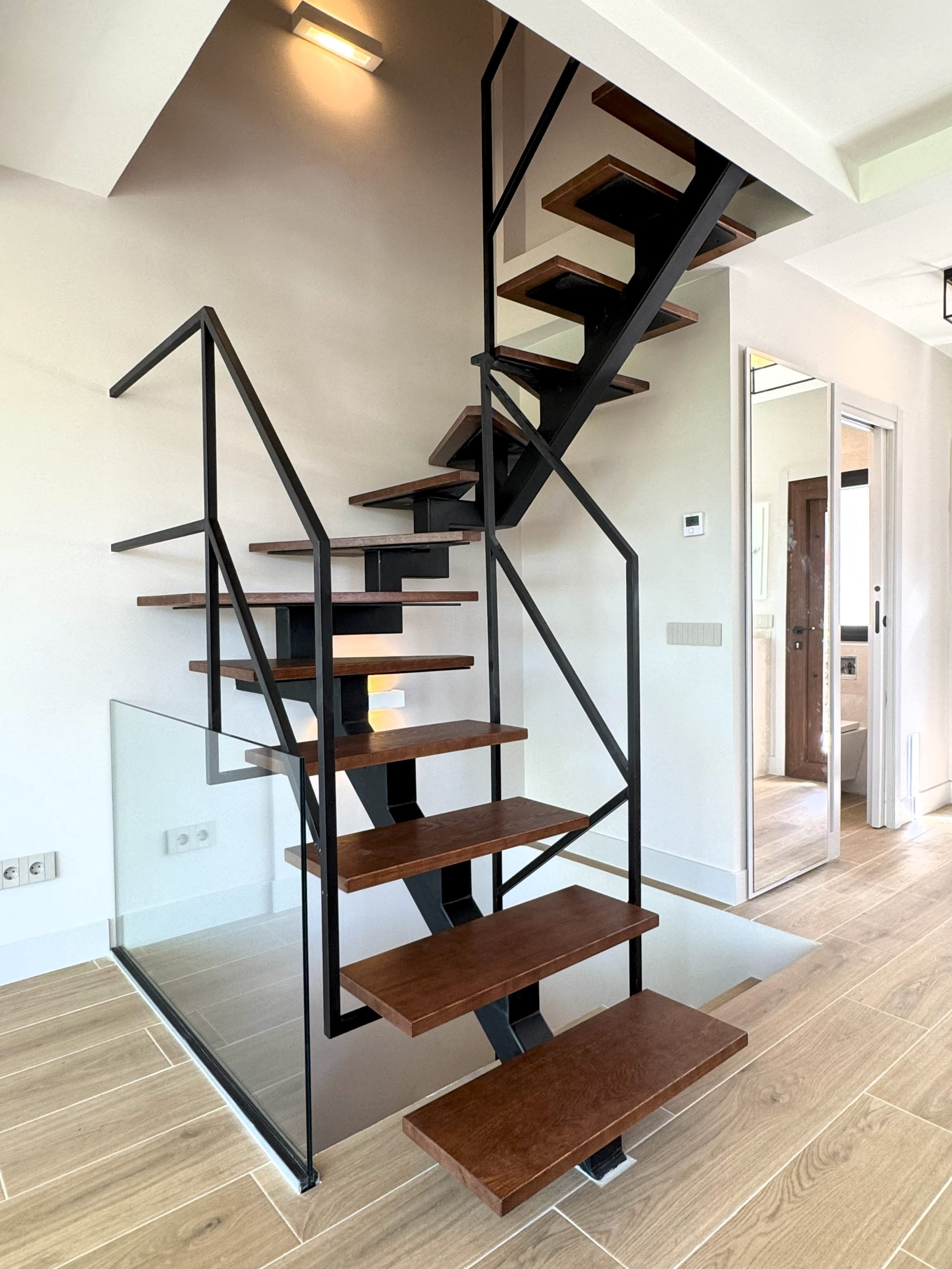 El proyecto se centró en unificar todas las plantas desde el interior, mediante la apertura de un gran hueco estructural y la instalación de dos tramos de escalera volada, que articulan la circulación vertical y aportan carácter al conjunto.