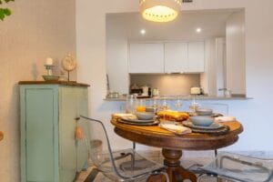 La transformación incluyó la demolición de algunas paredes y la creación de nuevos arcos para abrir el espacio. Instalamos una cocina completamente nueva y equipamos el apartamento para dar cabida a hasta 6 huéspedes. Ahora, este lugar se ha convertido en un residencia moderna y acogedora que ofrece comodidades excepcionales.