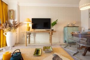 El reto era convertir este apartamento, que había envejecido con el tiempo, en un espacio actual y acogedor para alojar a viajeros exigentes. Con un toque de elegancia, amueblamos y decoramos en tonos suaves de vainilla, infundiendo el espacio con luz y la calidez de tejidos y papel pintado selecto. Cada rincón fue diseñado para que los turistas se sientan bienvenidos y relajados.
