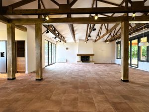 Al retirar los falsos techos originales, surgió la oportunidad de integrar las vigas existentes como elementos protagonistas del diseño, reforzando la estructura para dejarlas vistas y aportar un carácter singular al espacio.