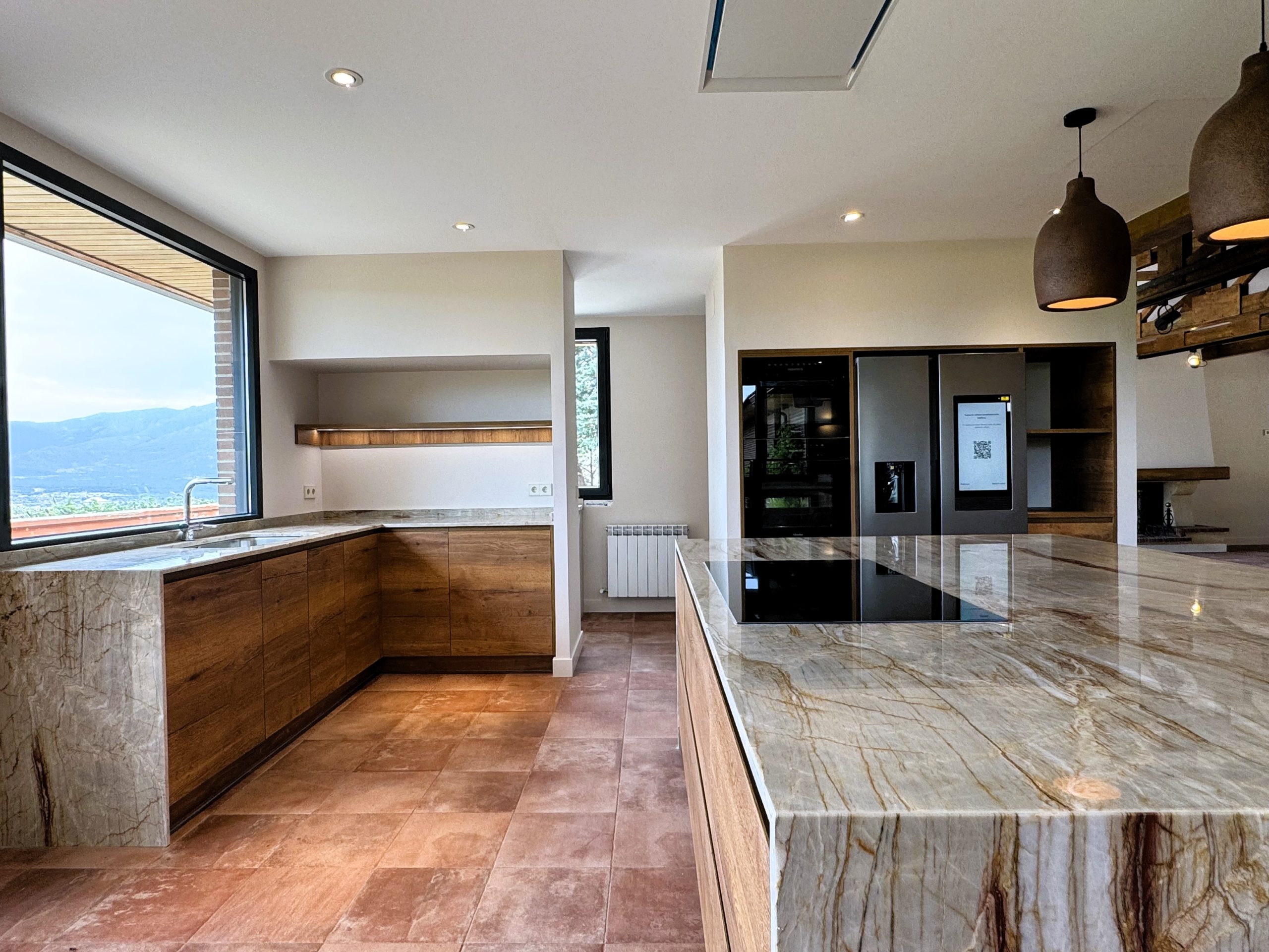 La antigua cocina se integró por completo en el salón, generando un gran ambiente diáfano y social, donde la encimera de cuarzo natural se convierte en uno de los elementos más destacables de la reforma, aportando elegancia, resistencia y un carácter muy especial al conjunto.