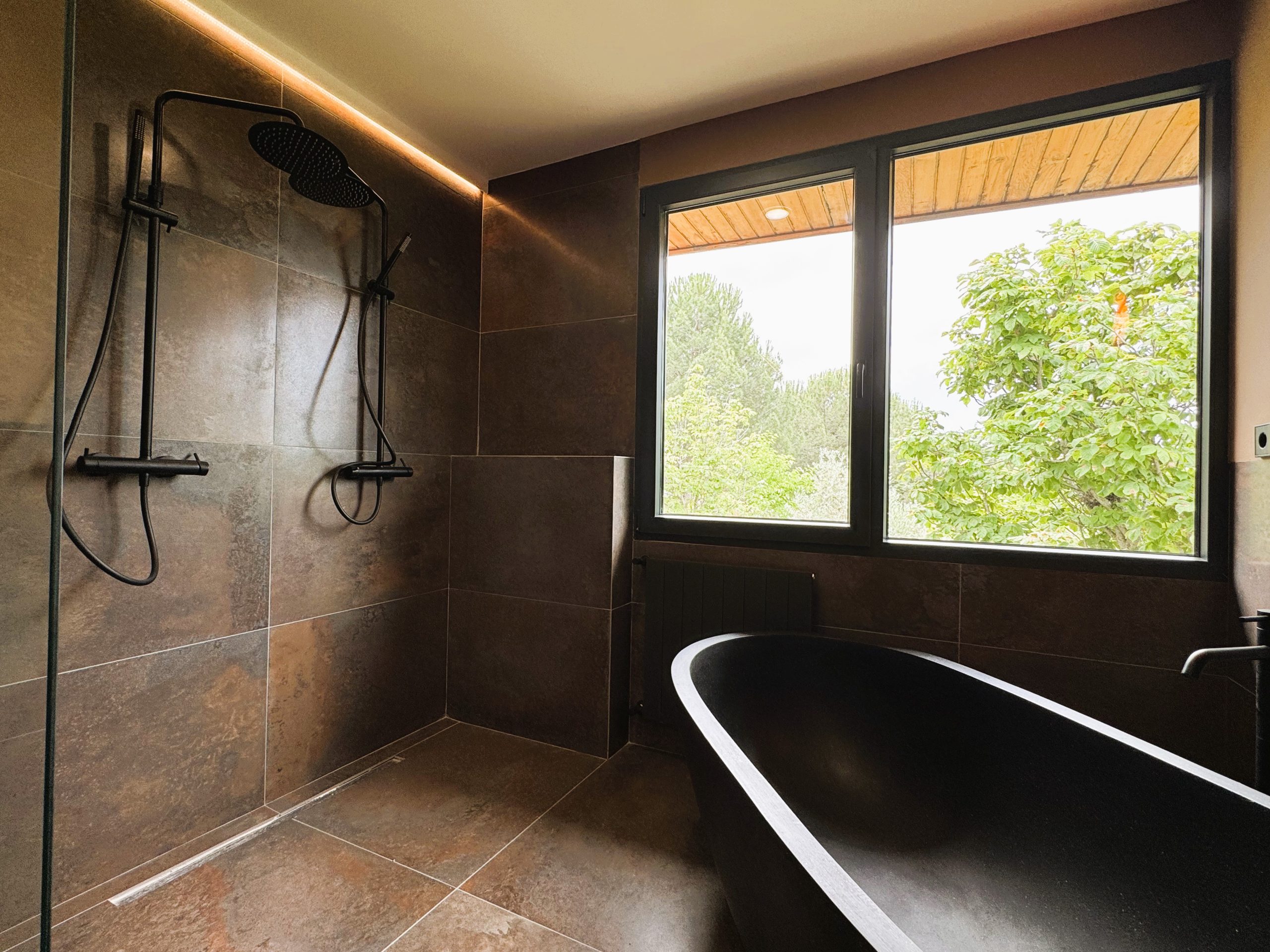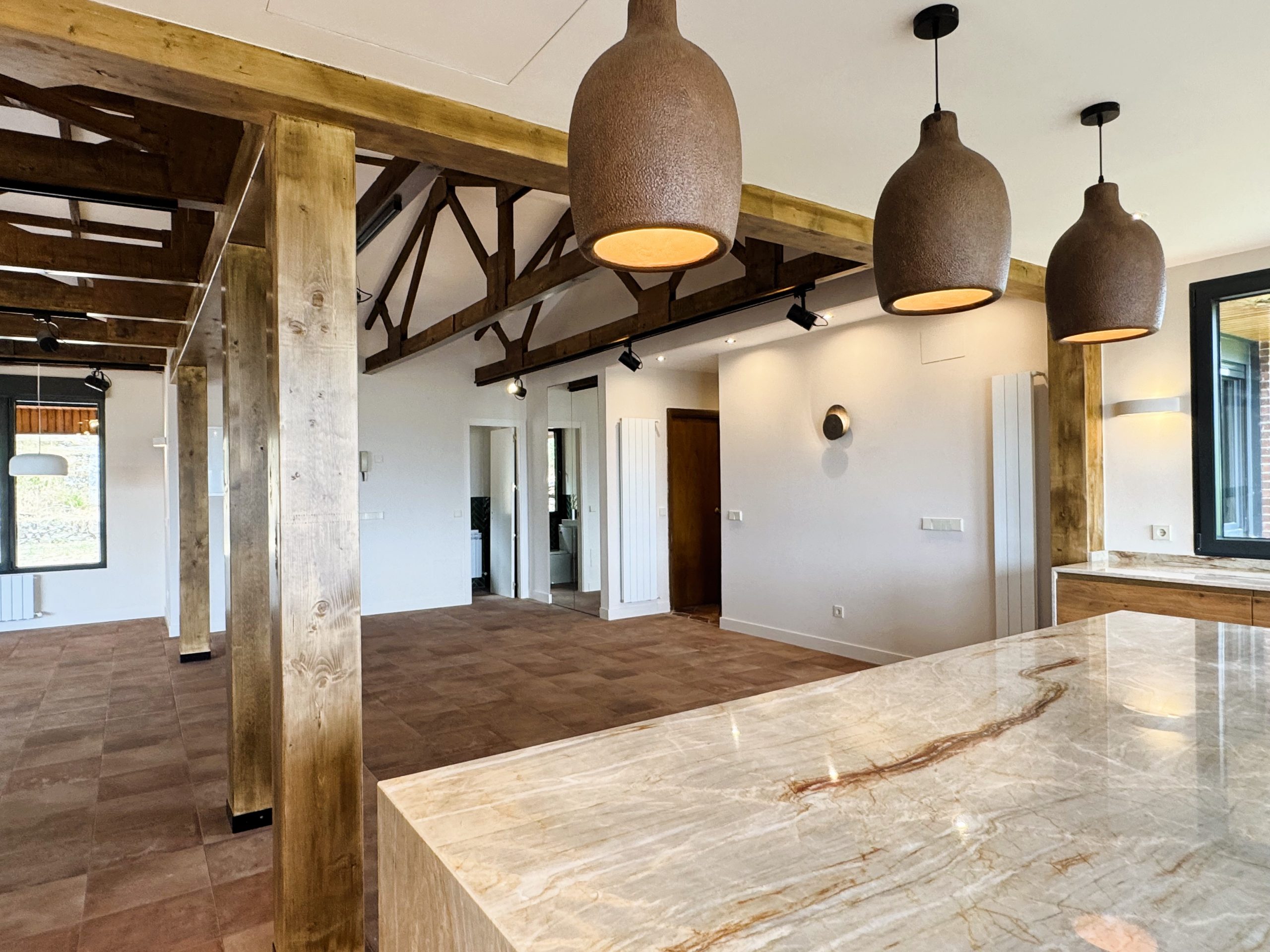 La reforma consigue un equilibrio entre la calidez del carácter rústico de las vigas originales y la estética contemporánea de los nuevos materiales y acabados, consiguiendo un resultado acogedor, luminoso y muy actual.